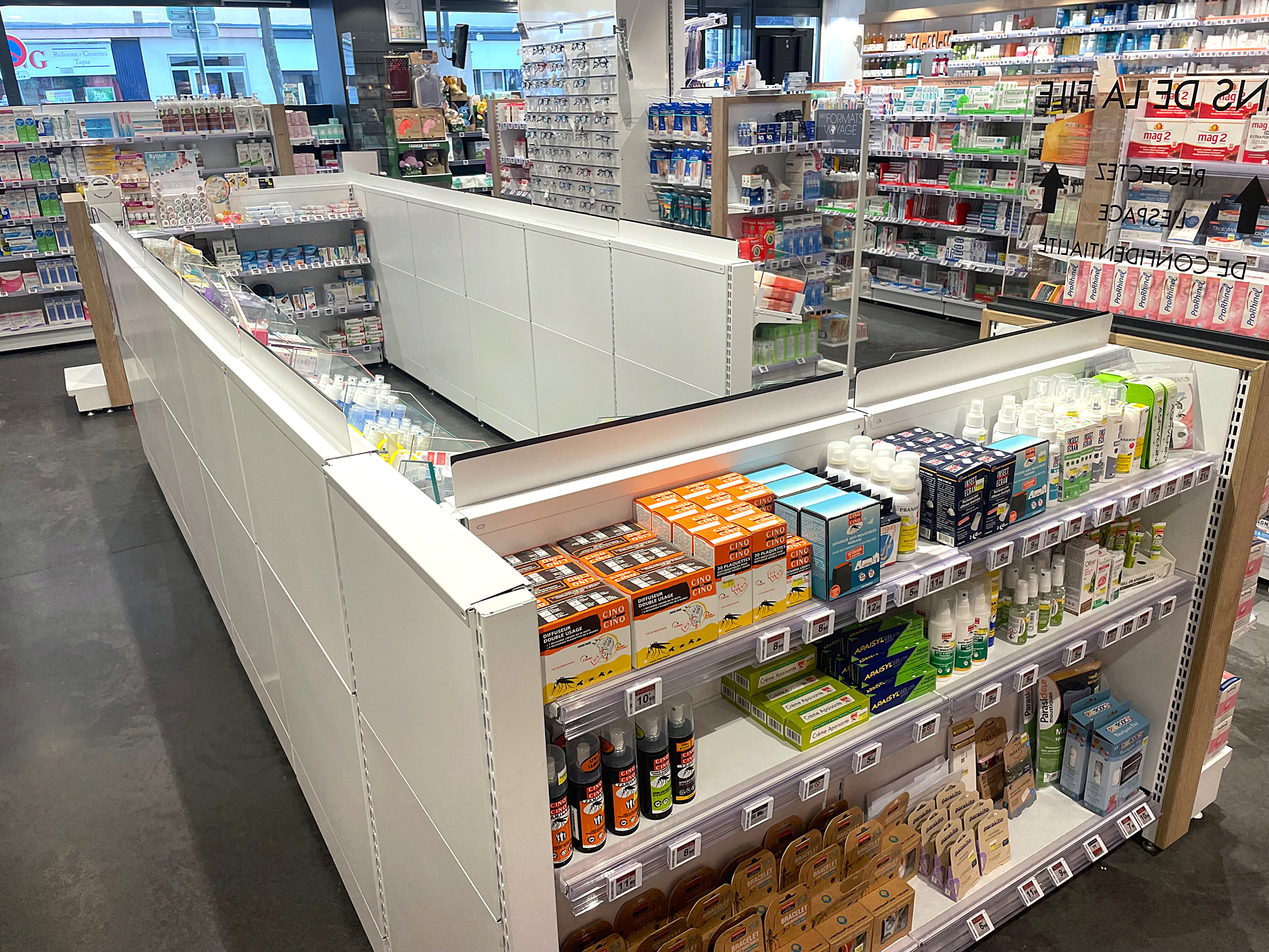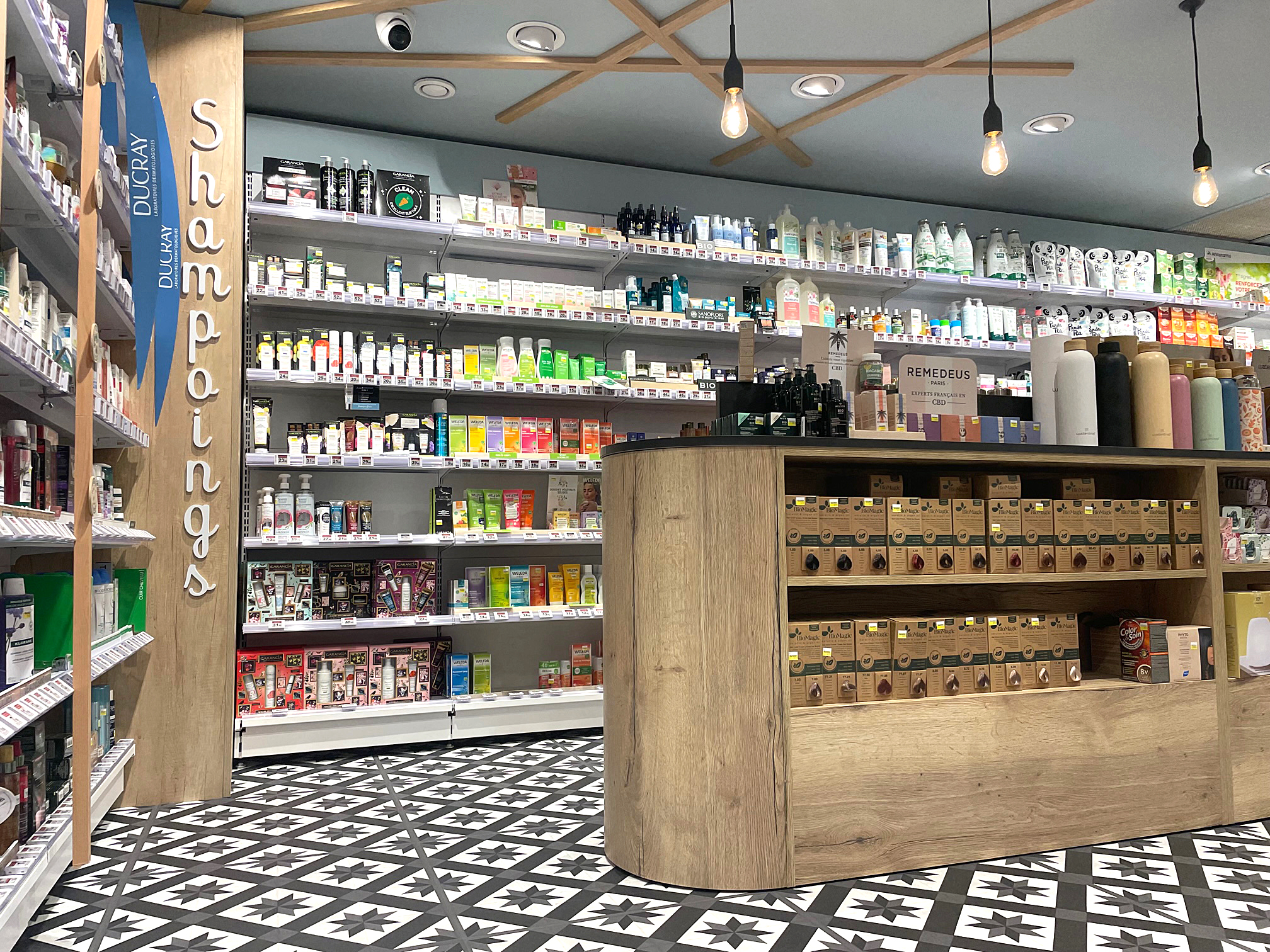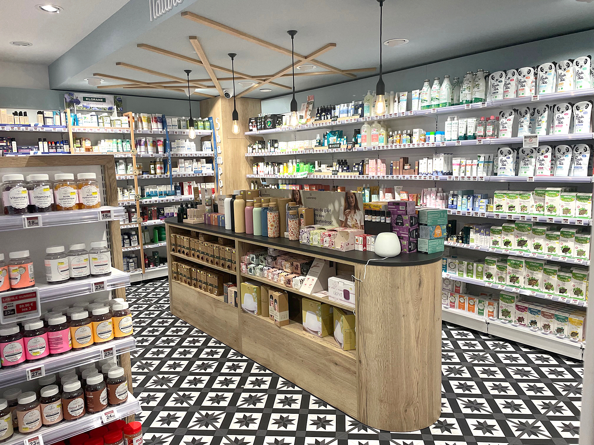 Proexpace est intervenue pour réaliser un agrandissement de pharmacie. Nous avons gagné de la superficie dans l’espace de vente et créé un corner Nature.