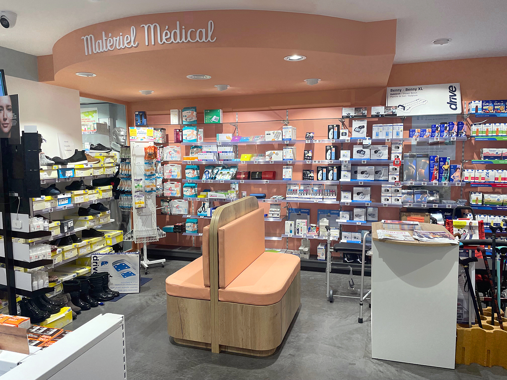 - Création d’un corner Orthopédiste avec des coloris spécifiques pour les murs et le mobilier.