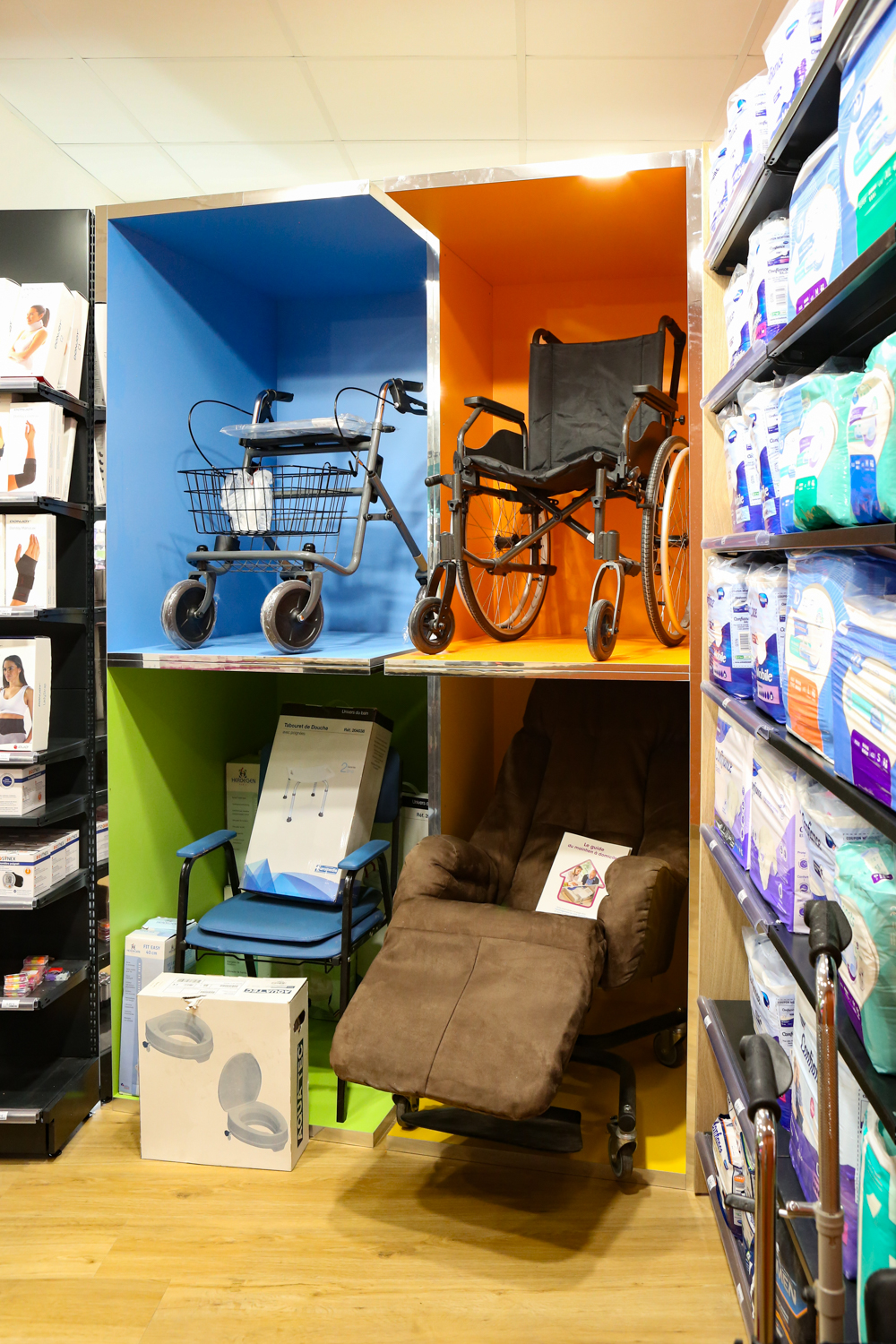 En repensant l’agencement intérieur, nous avons créé un environnement plus accueillant et fonctionnel. Deux entrées et une sortie unique transforment le parcours client en une expérience intuitive. Ce nouveau parcours encourage la découverte des produits et services, comme les consultations personnalisées et les solutions de Maintien À Domicile (MAD).