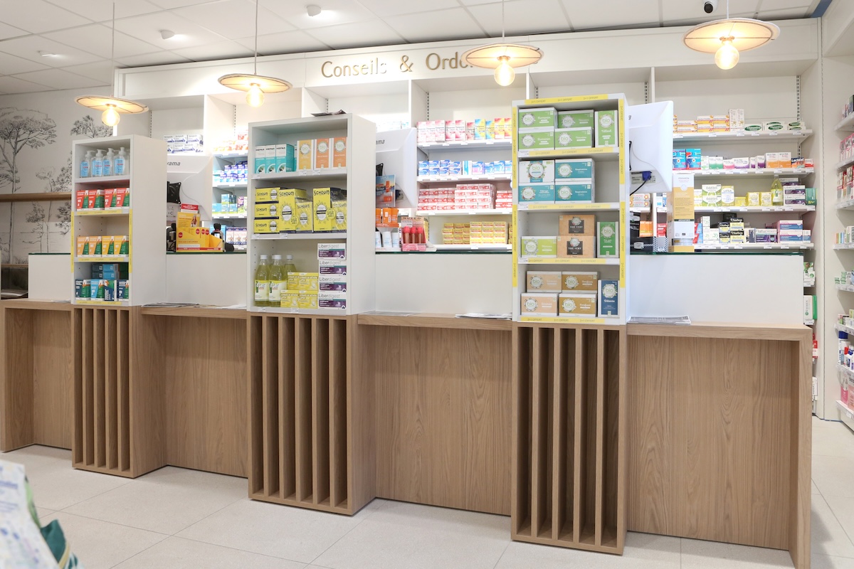 Agencement avec du mobilier spécifique pour Pharmacie