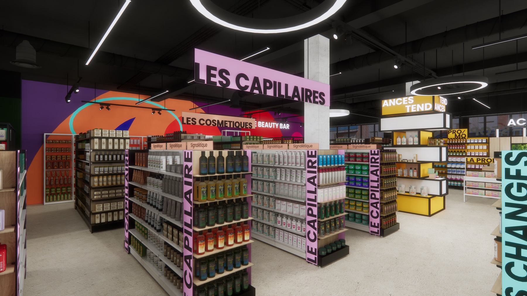 L'environnement opérationnel (intégration robot, transitique, répartition surface de vente / BO, prestations de services (salles de soins – orthopédie, HPST, oncologie, … / téléconsultation / vaccination, click & collect, self-scanning)